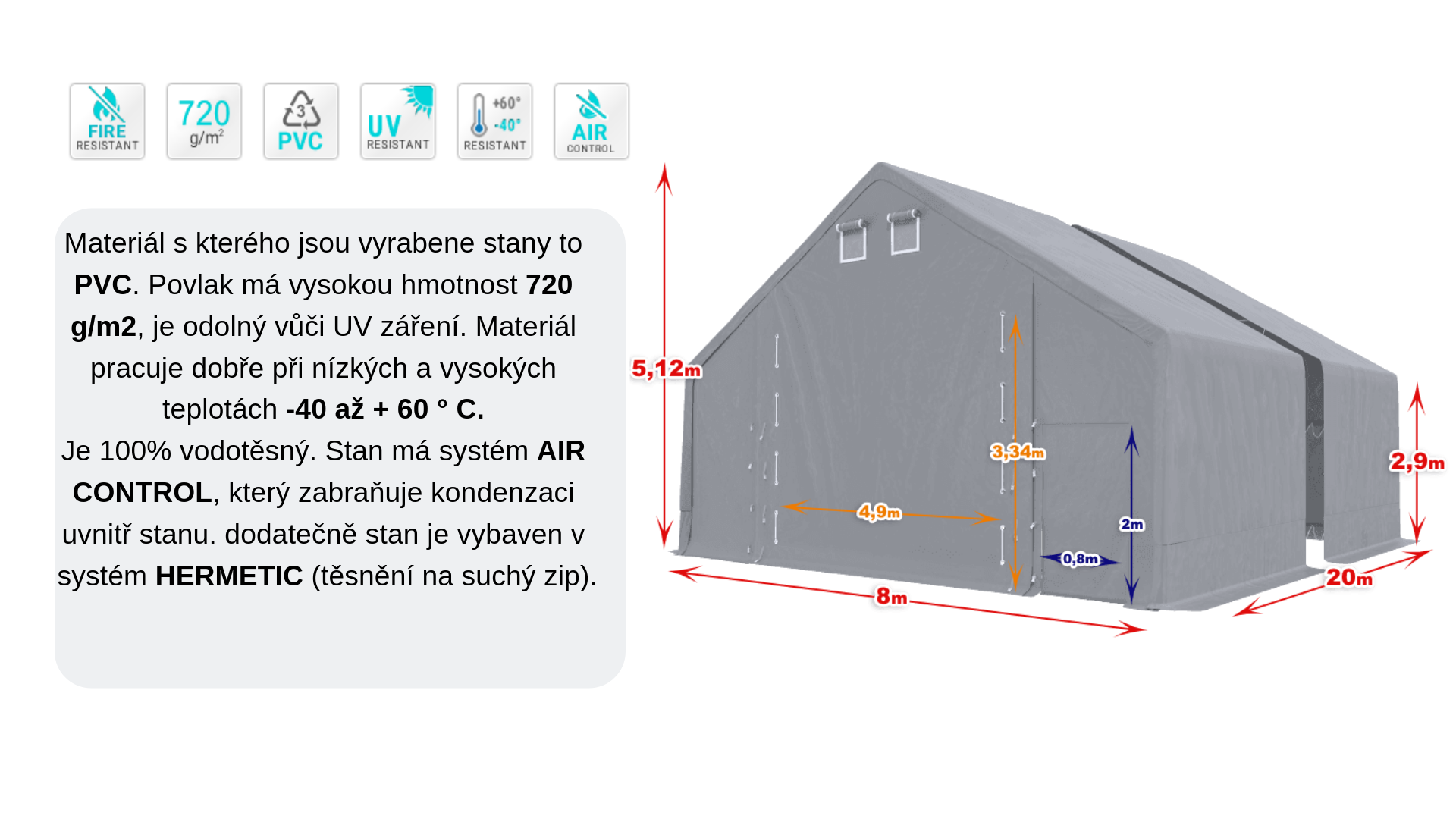 Celoroční stanova hala 8x20x3m verze A