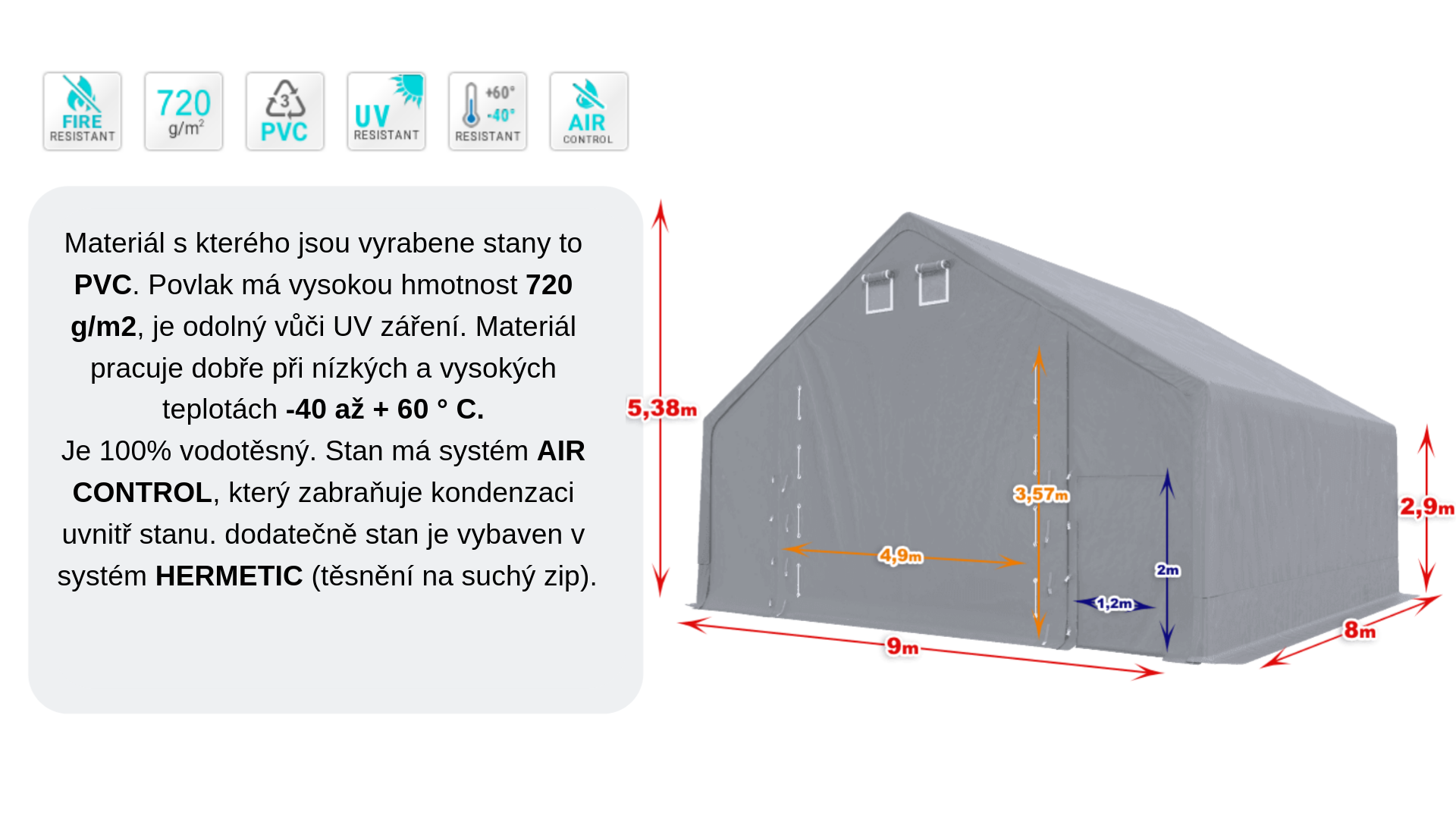 Celoroční stanova hala 9x8x3m verze A