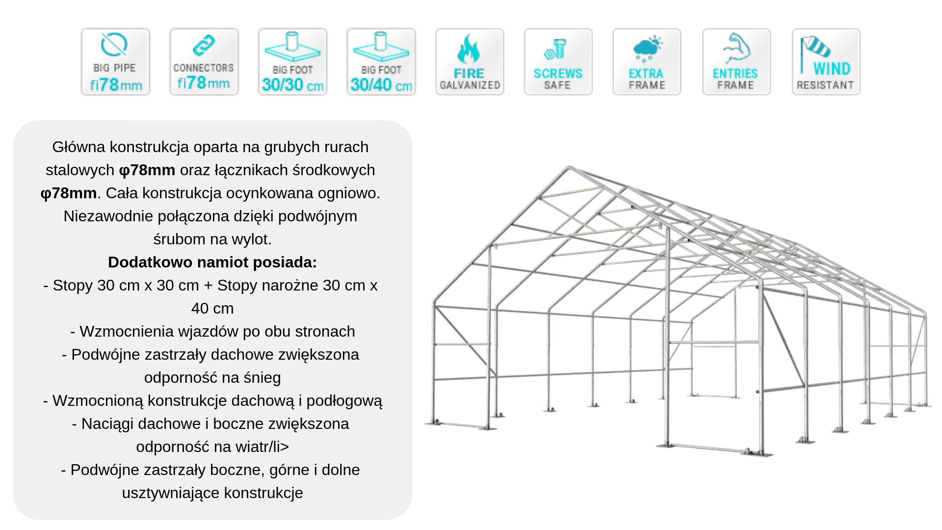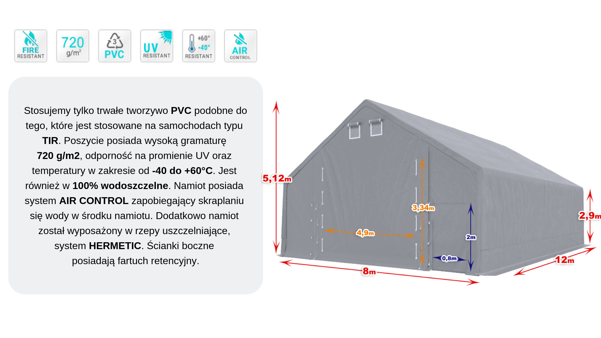 Hala namiotowa całoroczna 8x12x3m wersja A