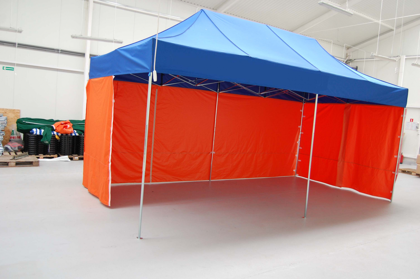 • komplet namiotu to: stelaż, dach, 3 pełne ściany,