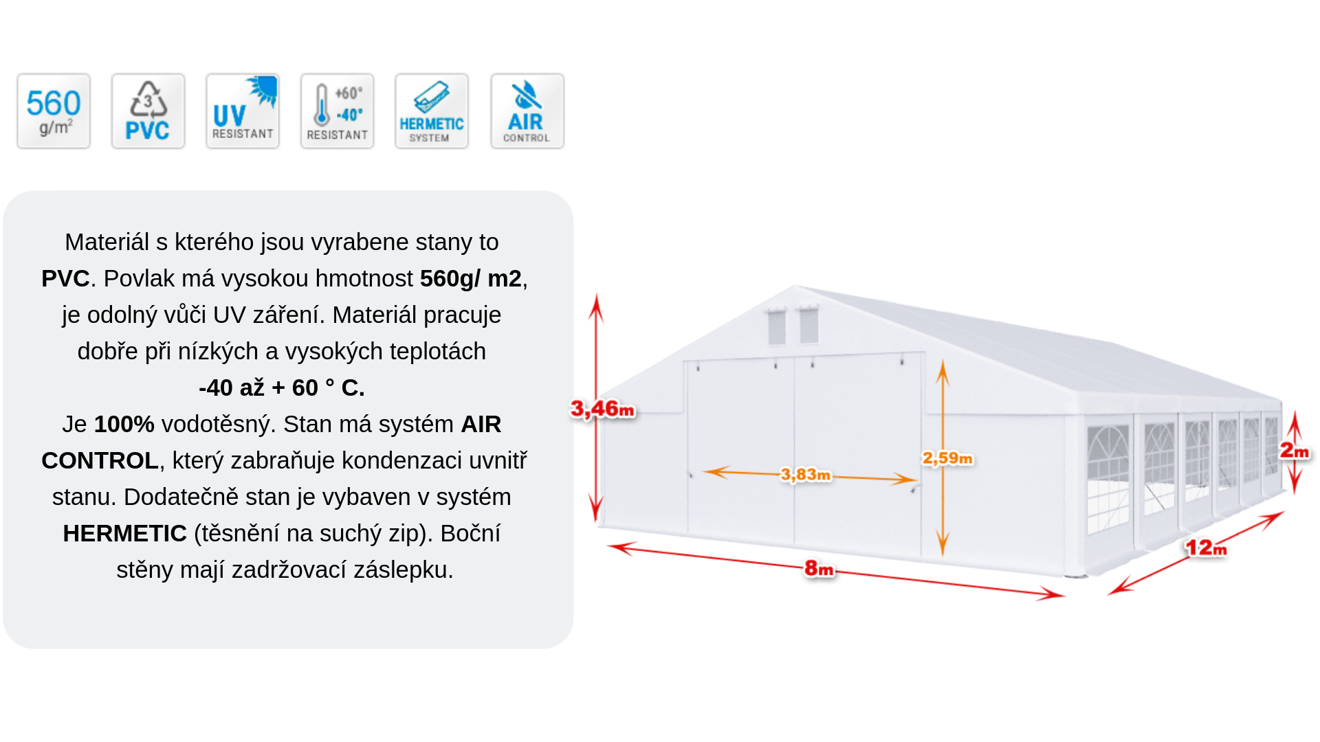 Celoroční party stan 8x12x2m verze "W+"