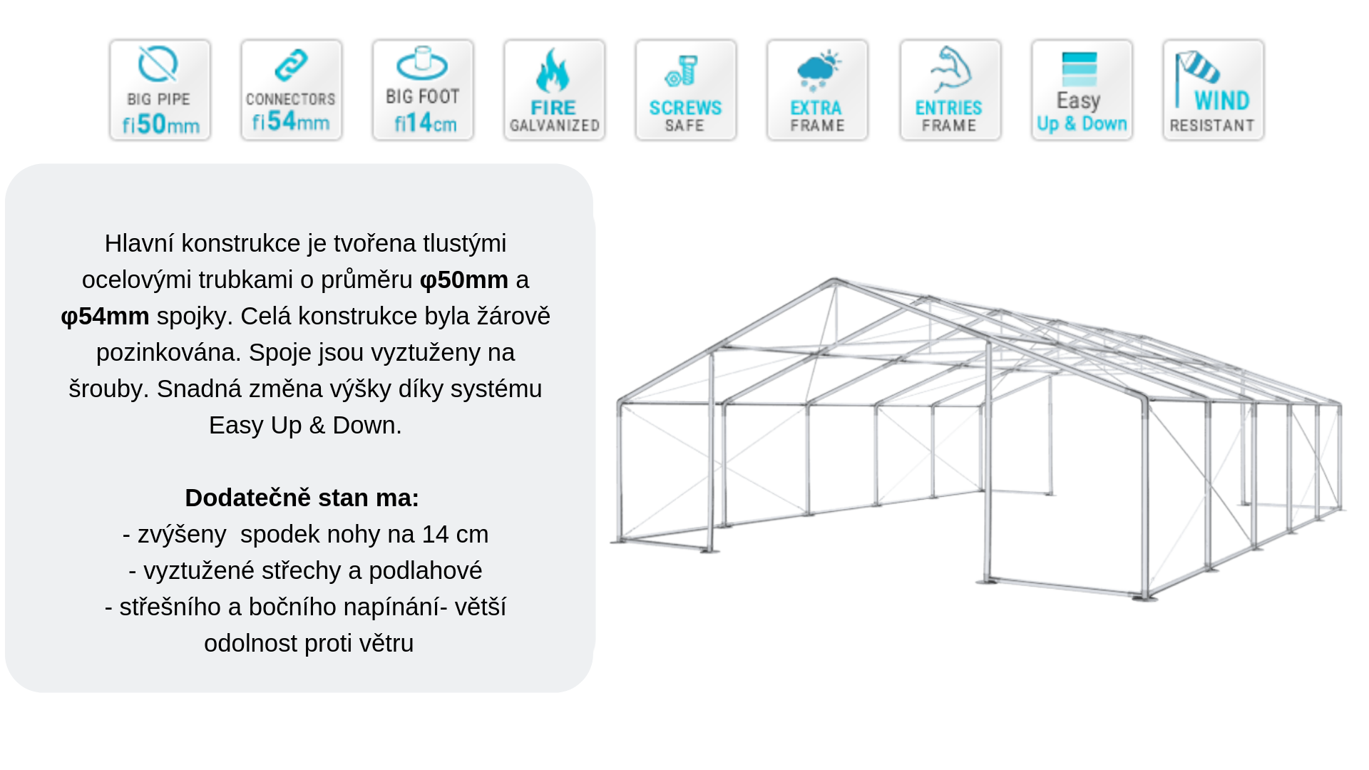 Celoroční skladovací stan 8x10x2m verze "W+"
