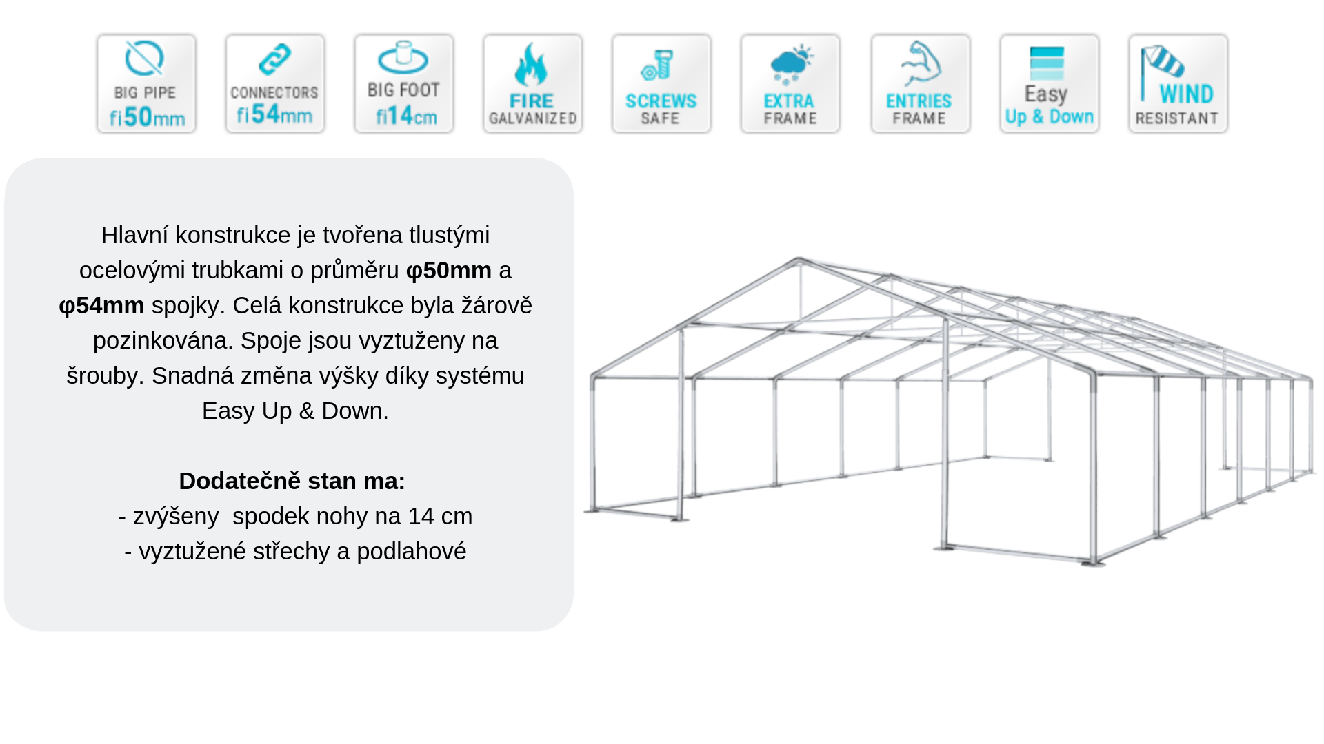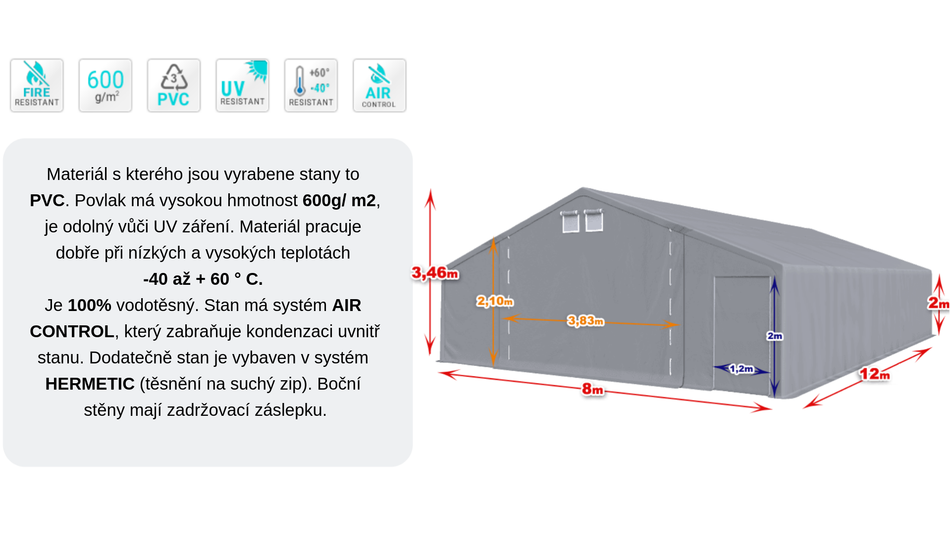 Celoroční skladovací stan 8x12x2m verze  "W"