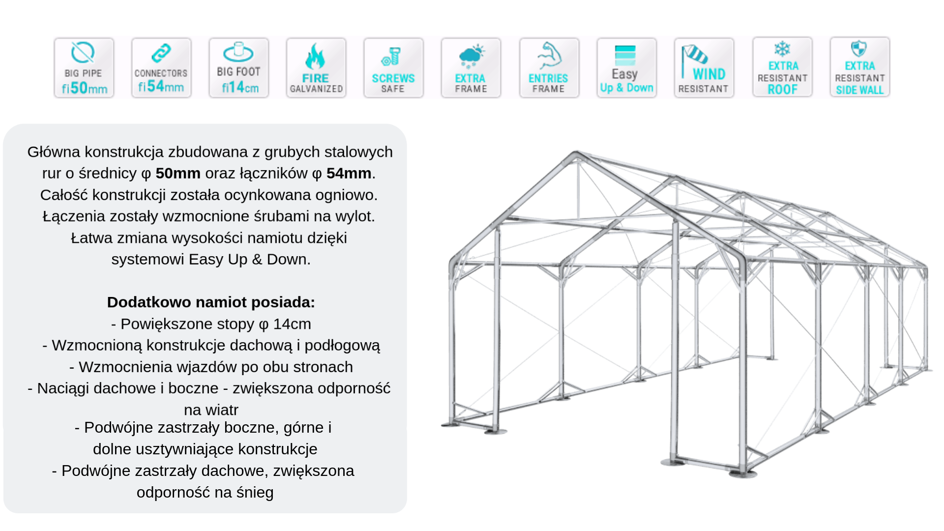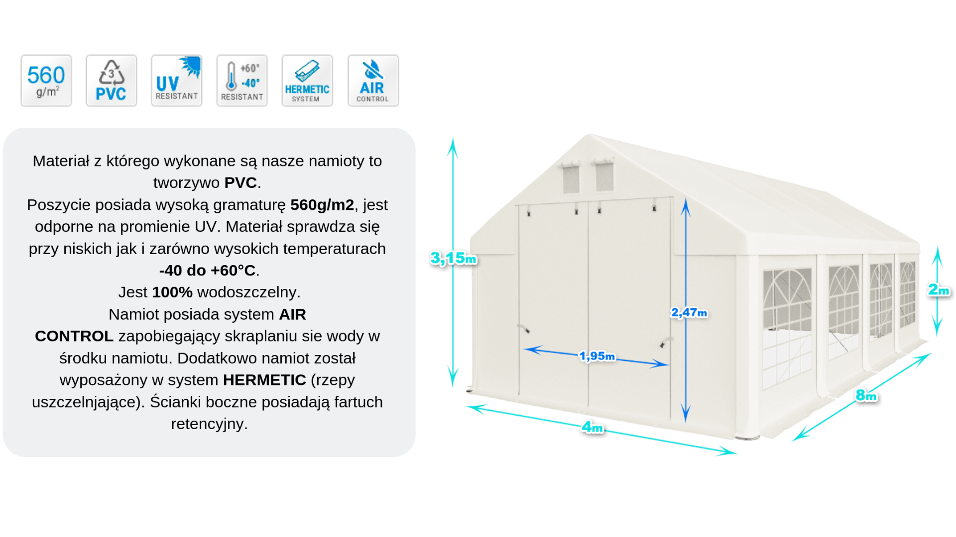 Celoroční party stan 4x8x2m verze "P+"