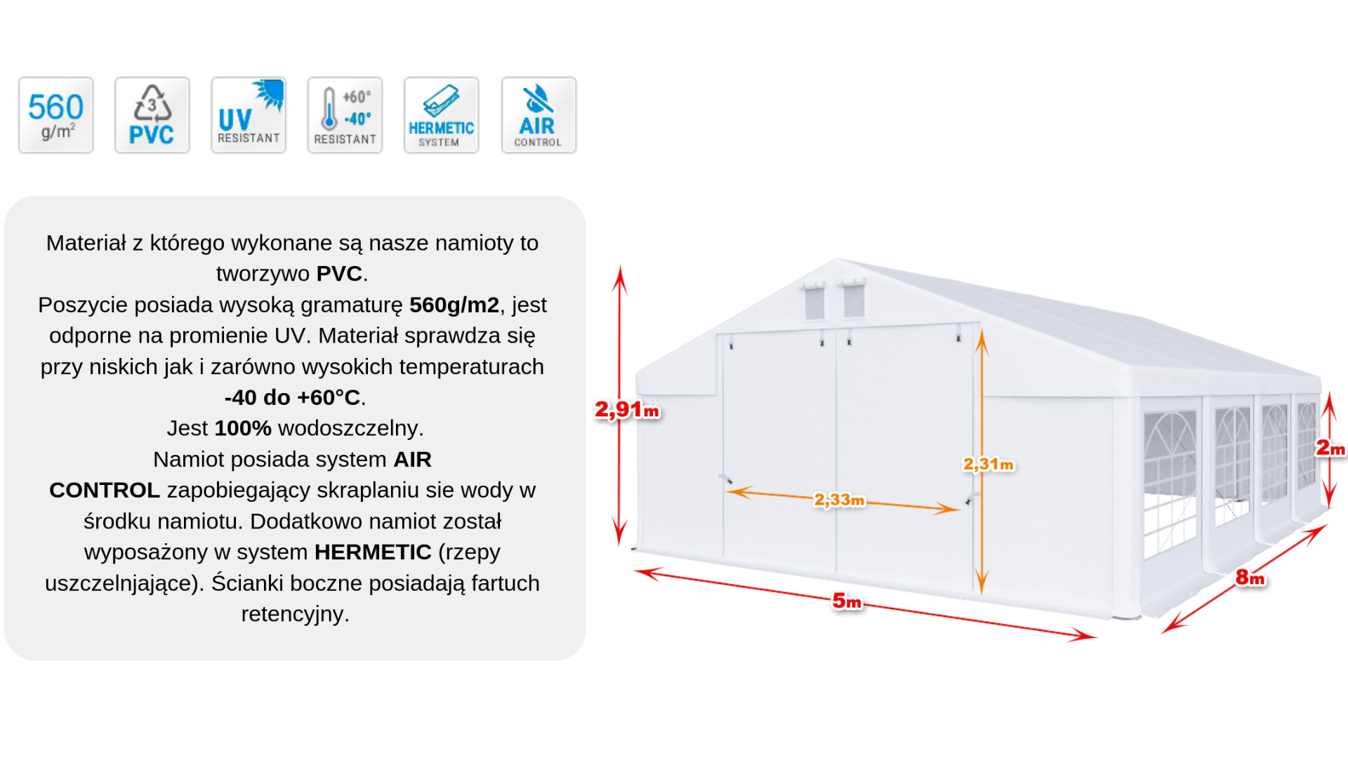 Namiot całoroczny imprezowy 5x8x2m wersja W