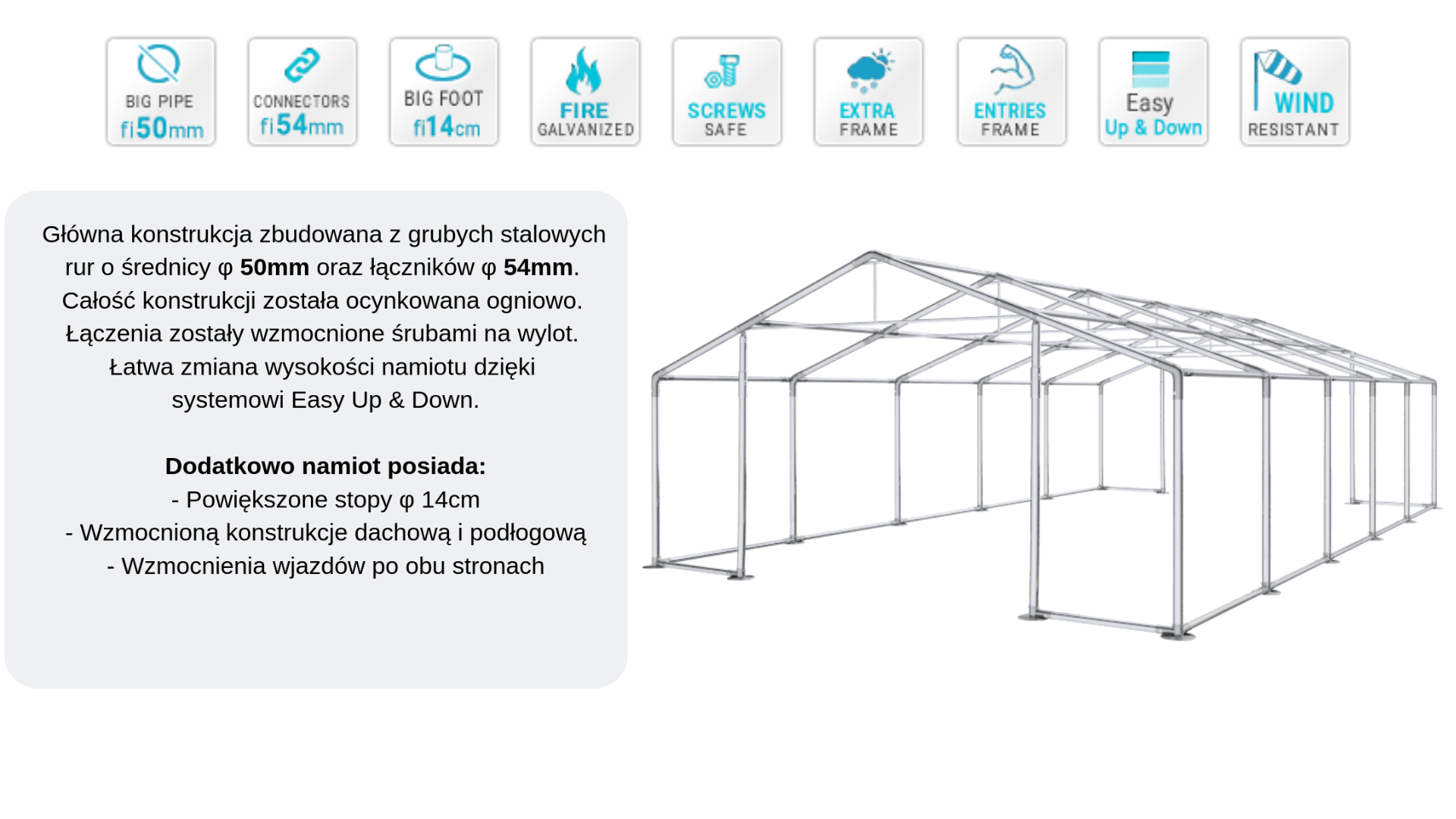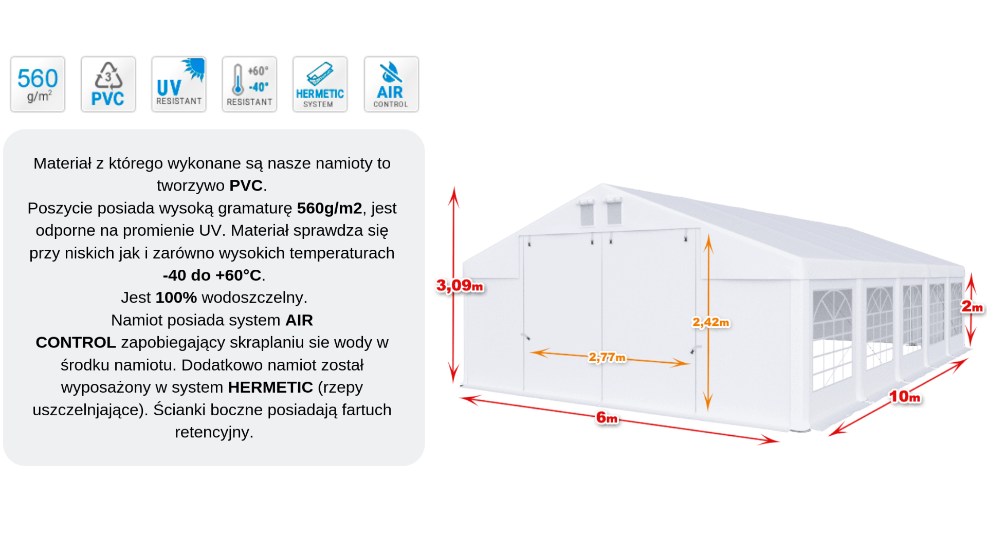 Namiot całoroczny imprezowy 6x10x2m wersja W