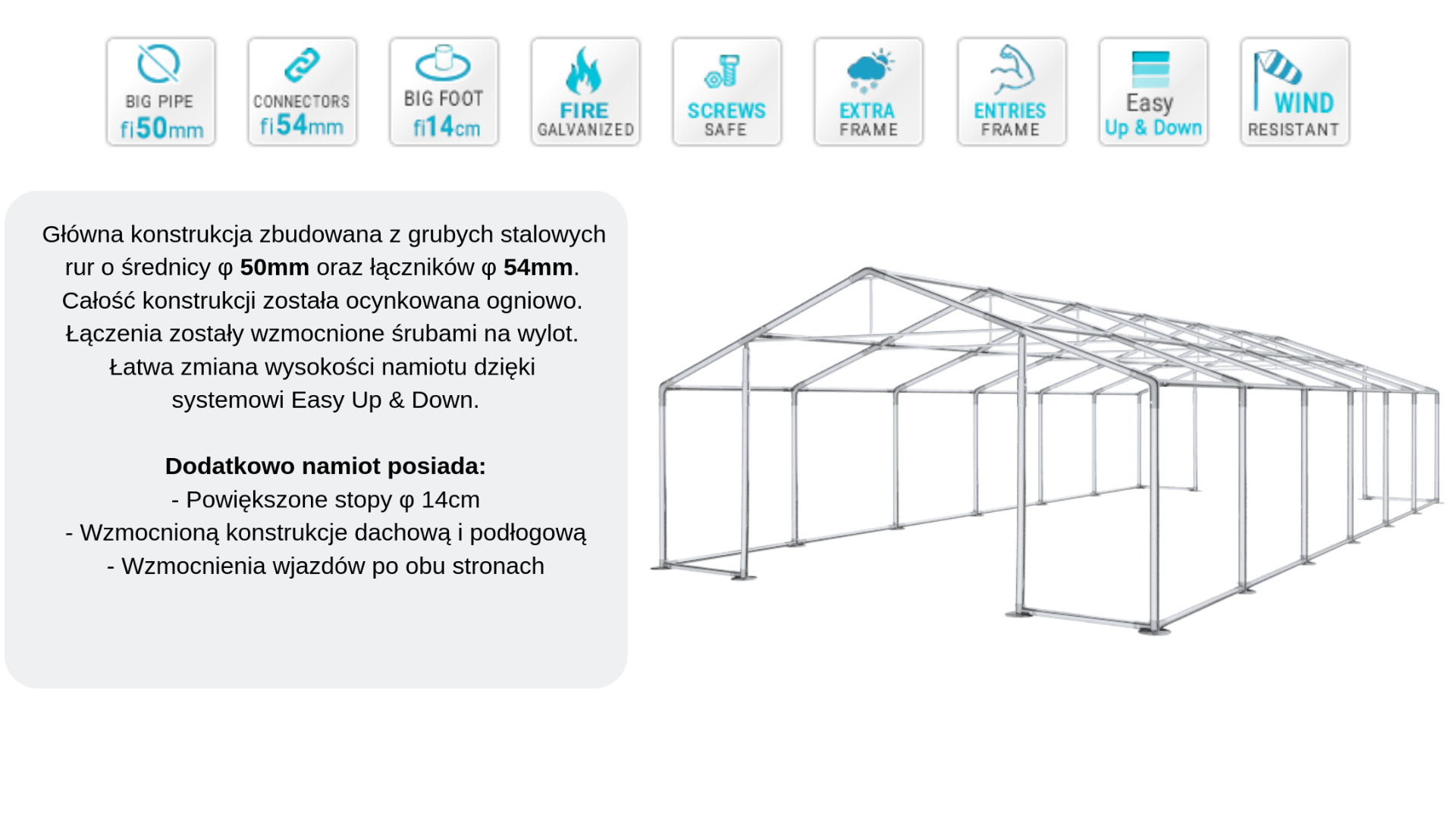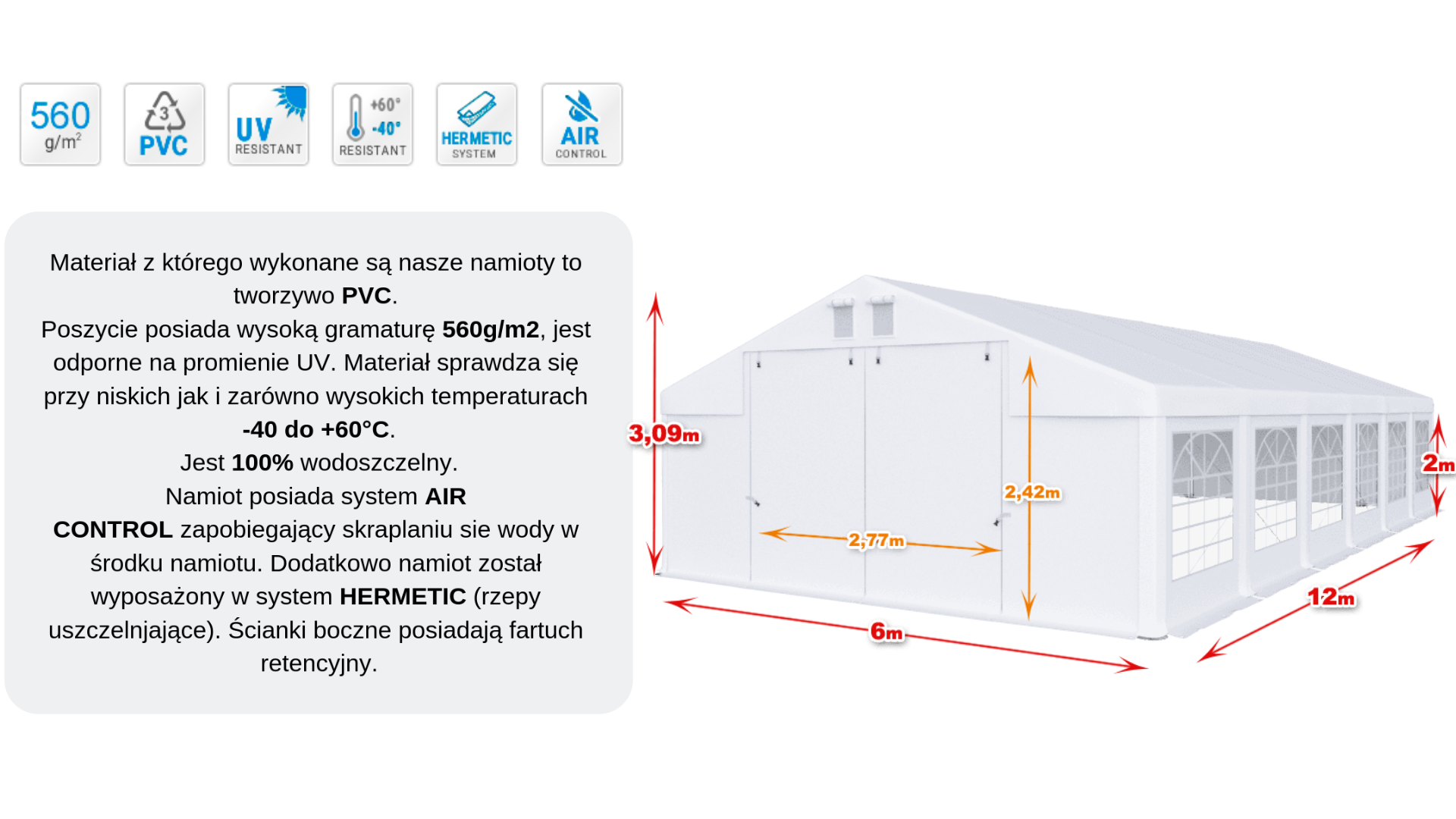 Namiot całoroczny imprezowy 6x12x2m wersja W