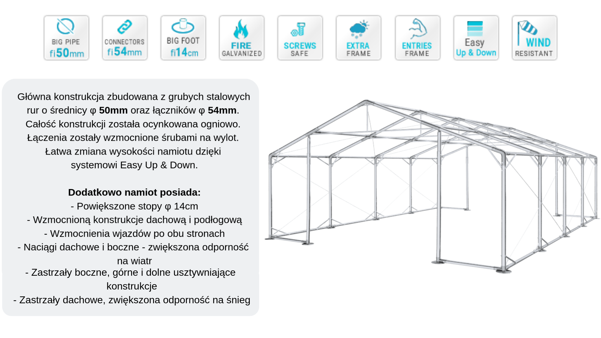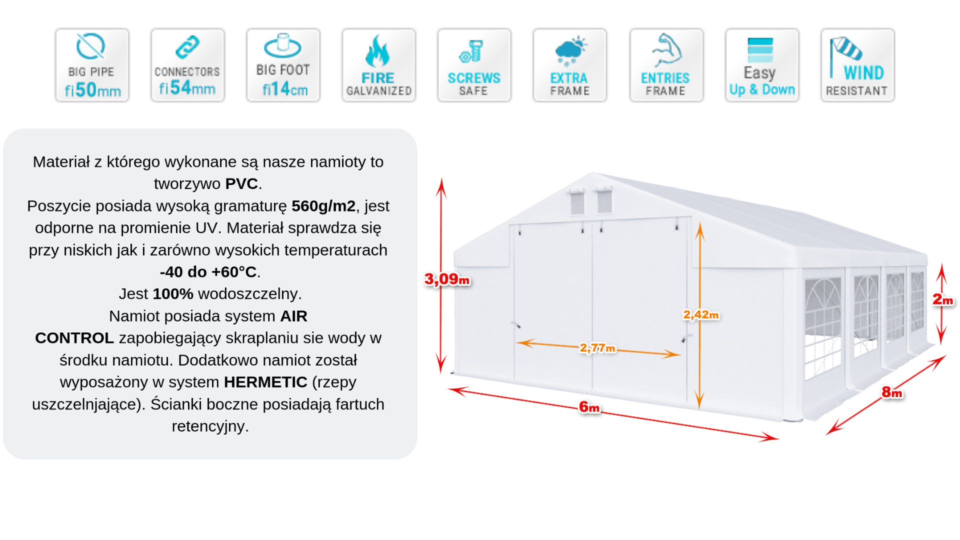 Namiot całoroczny imprezowy 6x8x2m wersja "P"