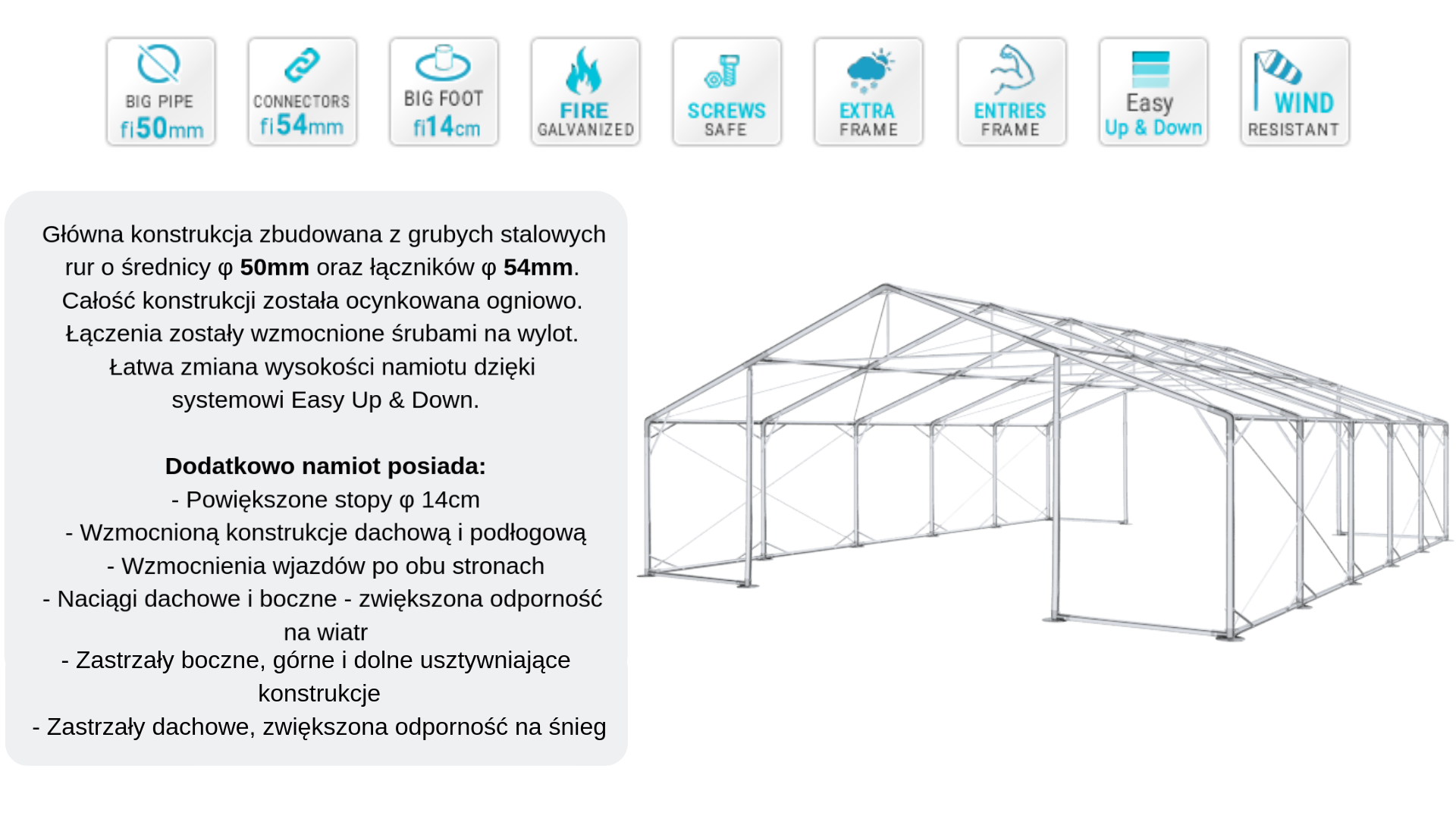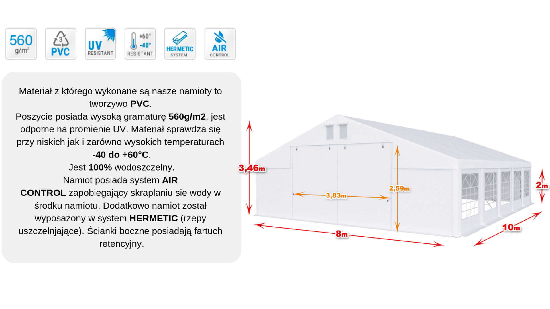 Namiot całoroczny imprezowy 8x10x2m wersja "P"