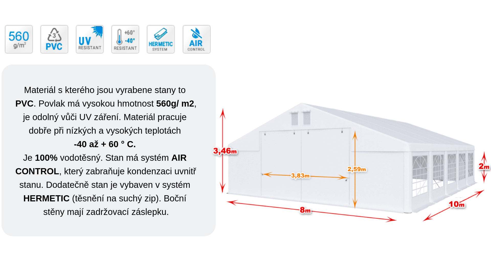 Celoroční party stan 8x10x2m verze "P"