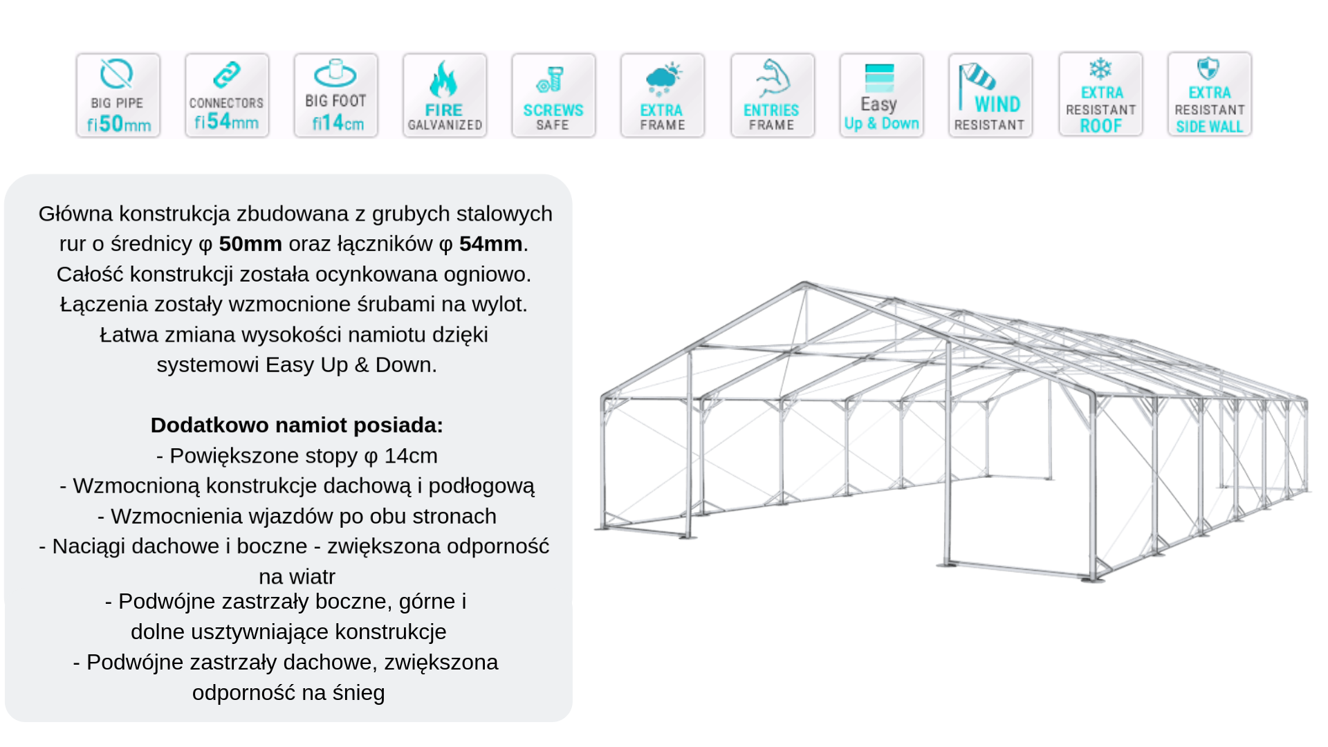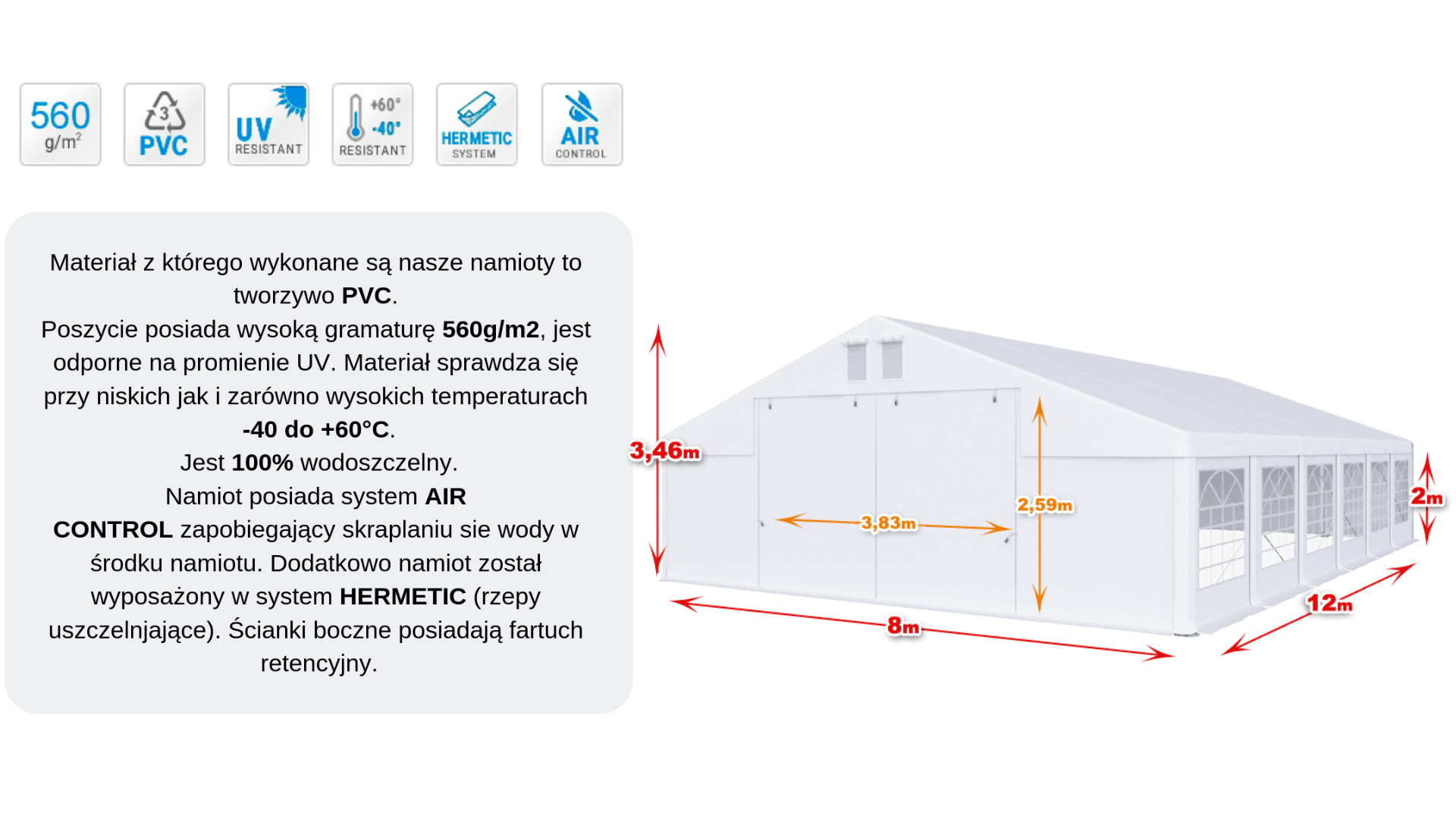 Namiot całoroczny imprezowy 8x12x2m wersja "P+"