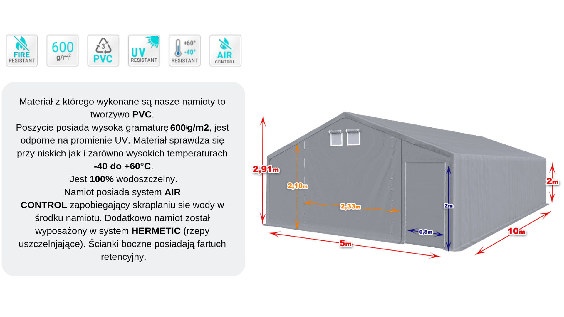 Namiot całoroczny magazynowy 5x10x2m wersja P