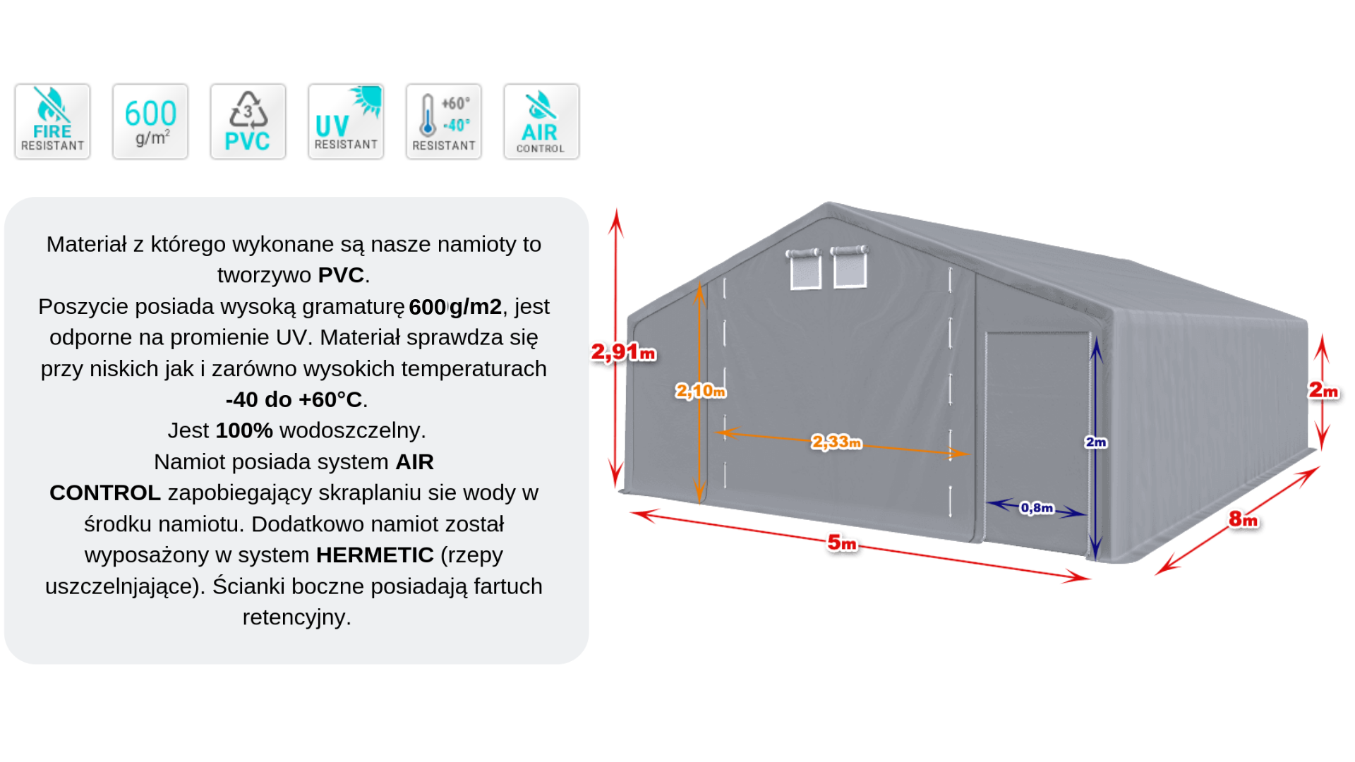 Namiot całoroczny magazynowy 5x8x2m wersja P+