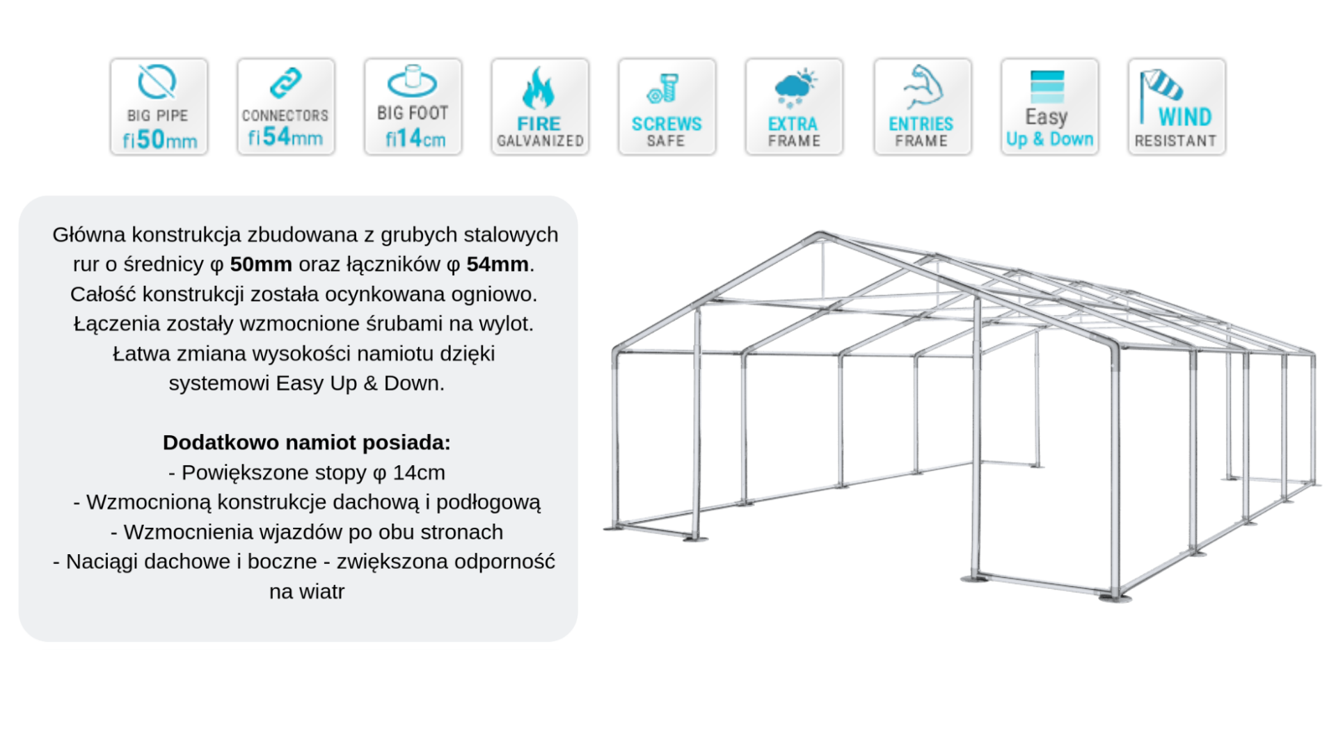 Namiot całoroczny magazynowy 5x8x2m wersja W