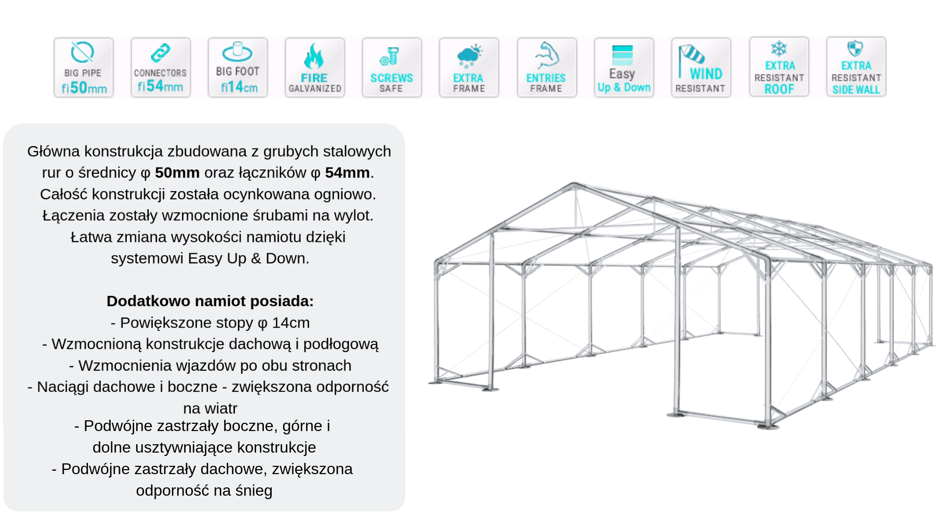 Namiot całoroczny magazynowy 6x10x2m wersja P+