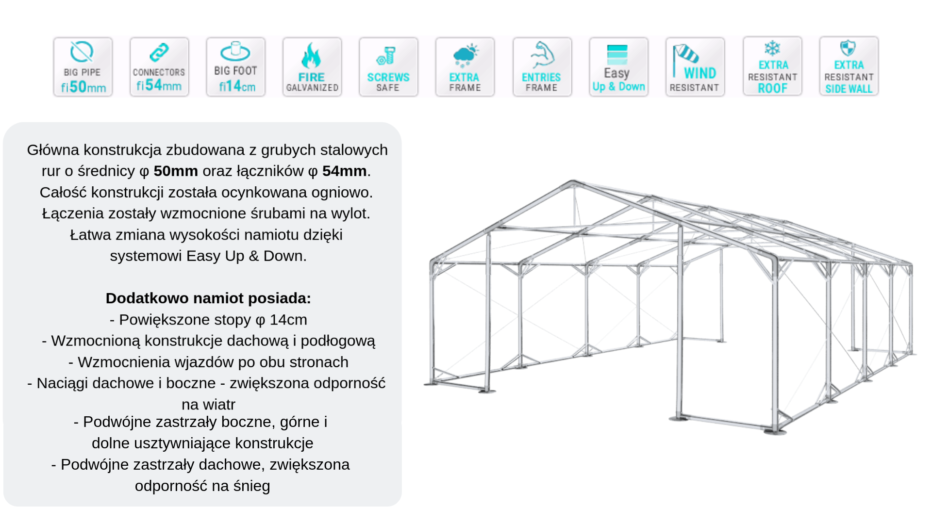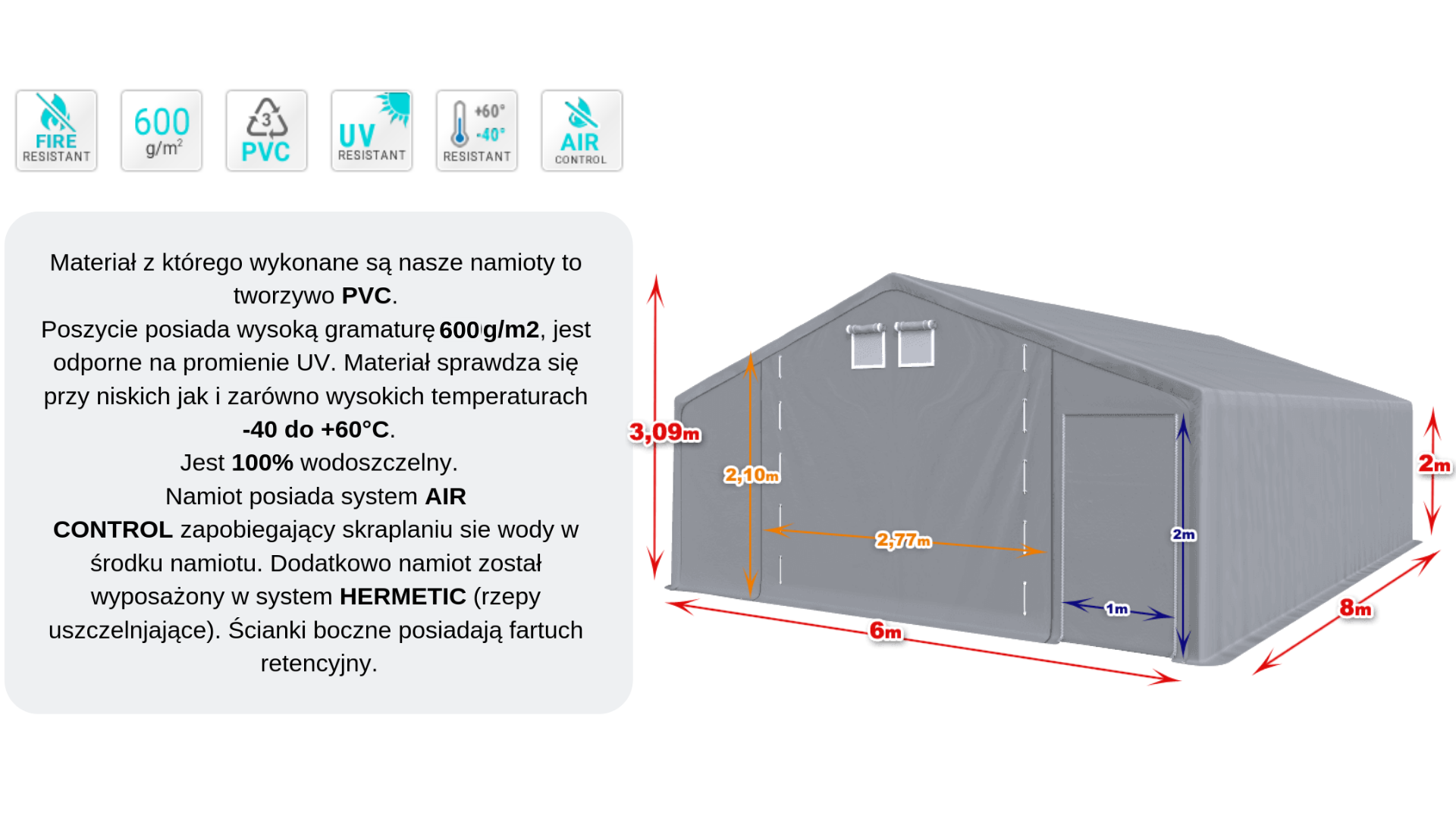 Namiot całoroczny magazynowy 6x8x2m wersja P+
