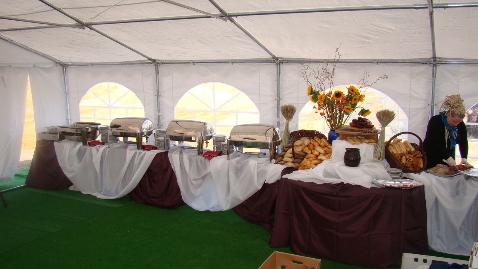 Przetestowaliśmy, iż nasz namiot pomieści około 64 miejsc stojących , lub około 40 miejsc siedzących na 5 kompletach biesiadnych o długości 2m. Jeśli chcecie Państwo ustawić krzesła w "salę kinową" zmieścicie wtedy 46 osób. |