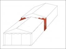 Wszystkie namioty można łączyć ze sobą zarówno po długości jak i szerokości, bez ryzyka przeciekania do wnętrza namiotu w przypadku złej aury. Dostępne rynny w kolorze białym o długości: 3m, 4m, 5m, 6m, 8m, 10m, 12m.