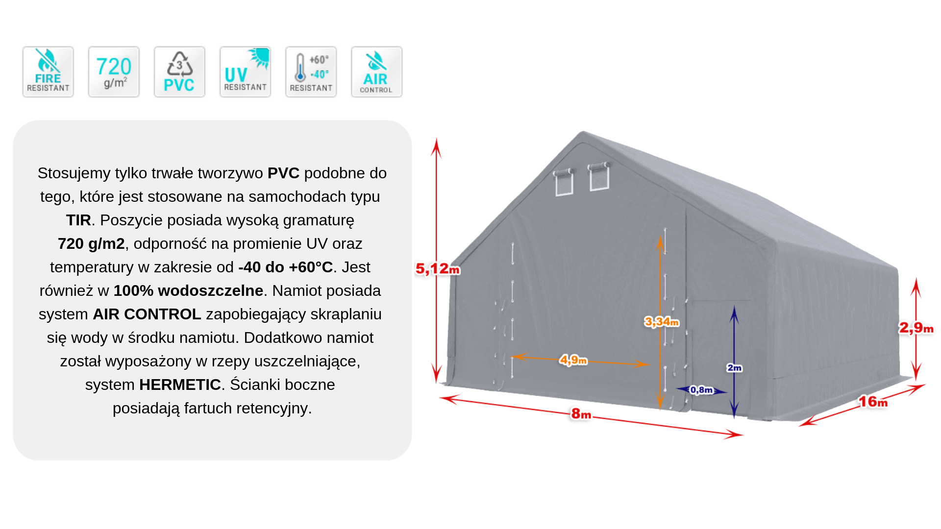 Hala namiotowa całoroczna 8x16 m "A"