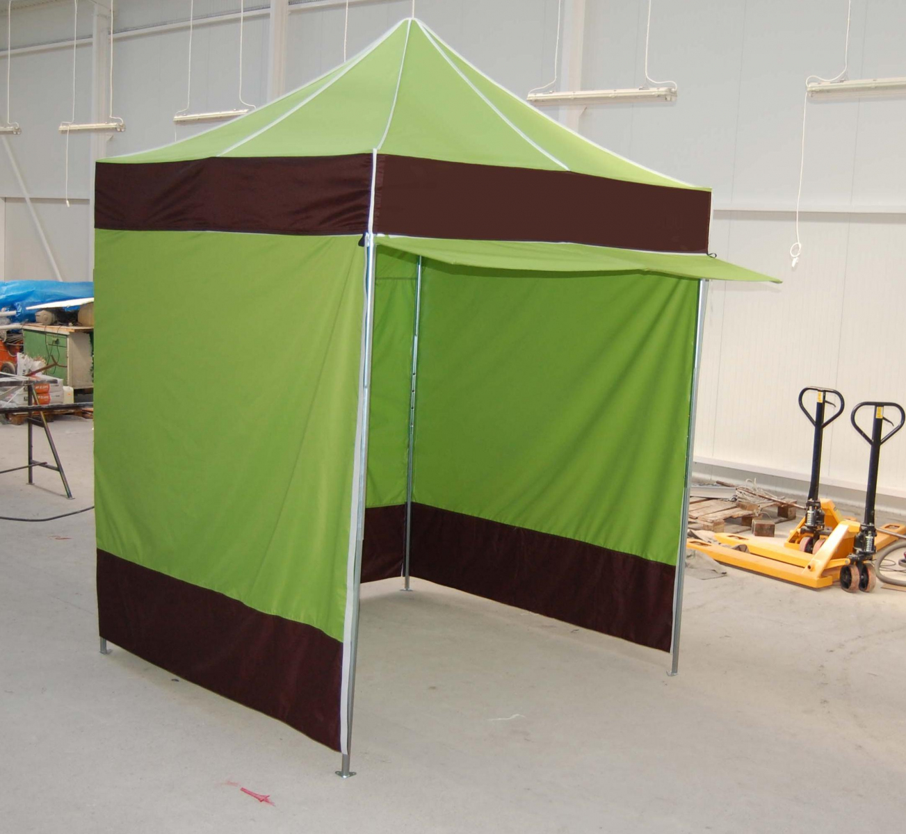 • komplet namiotu to: stelaż, dach, 3 pełne ściany,
